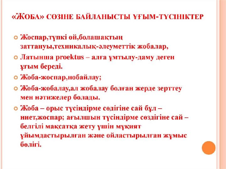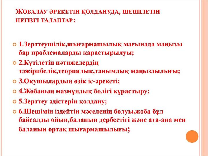 Ғылыми зерттеудің теориялық негіздері. Педагогикалық жобалау және оның теориялық негіздері. 1. Жобалау әдісі. 2. Жобамен жұмыс істеу – шығармашылық процесс. 3. Жоба – бұл нәтижелі қызмет.