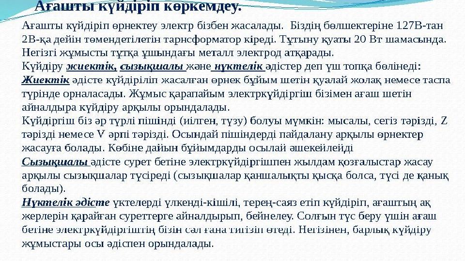 Сабақтың тақырыбы Пирография өнерімен танысу. Көркемдеп күйдіру техникасы мен тәсілдері.