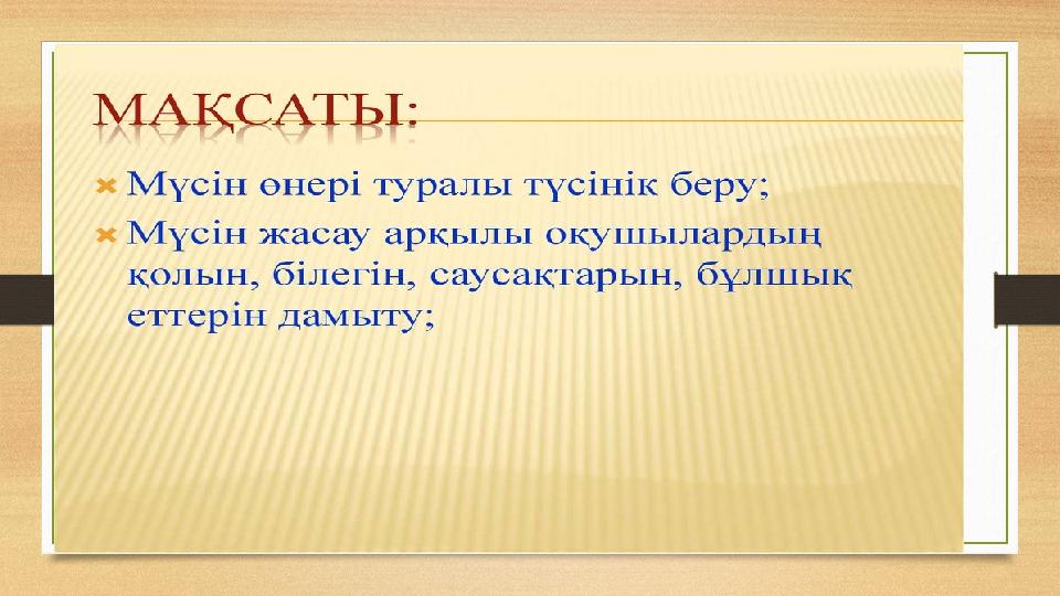 •4.Көркем еңбек сабақтарын өткізетін жерде тазалық пен тәртіп сақтау.