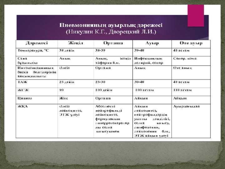 Қорытынды. Пневмония – жиі кездесетін , өлімге әкелетін себептердің ішінде алтыншы орындағы, ал ауруханаішілік инфекциялардан болатын өлім себебі ретінде бірінші орындағы ауру, сондықтан оның белгілерін білу және ерте бастан алдын алу әр дәрігер маманның міндеті. Әсіресе балаларда пневмония дамуының алдын алу бірінші міндет.