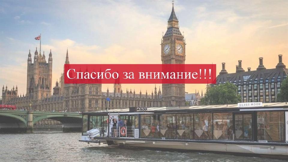 London Лондон это стoлица Великобритании. Население Лондона составляет около 9.000.000 человек! Третий город по величине Европы London is the capital of Great Britain. The population of London is about 9,000,000 people! Third largest city in Europe This city is located on the island "Great Britain" near the North Sea. Этот город находится на острове "Великобритания" возле Северного моря The area of London is 1602 km2 . Площадь Лондона составляет 1602км2