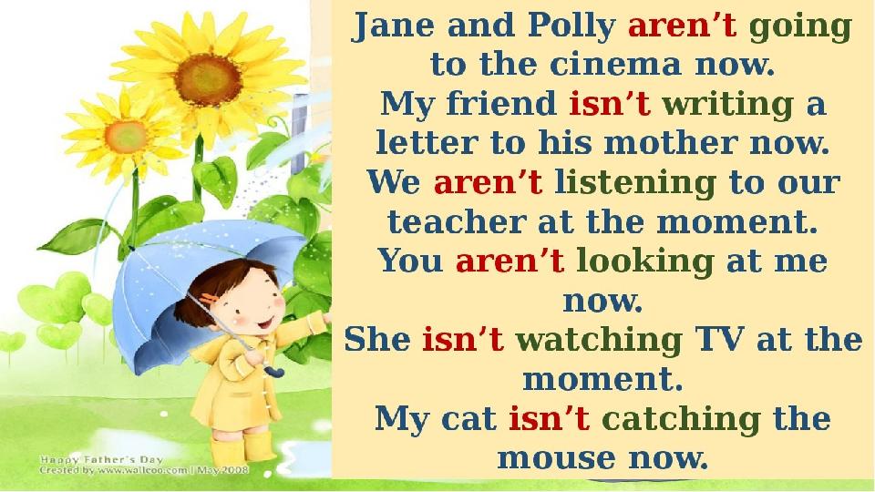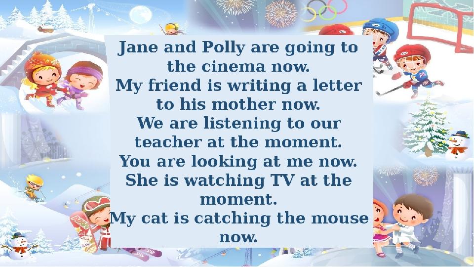 Посмотрите как все дружно живут в королевстве Present Continuous: I am playing football at the moment. We are watching TV now.