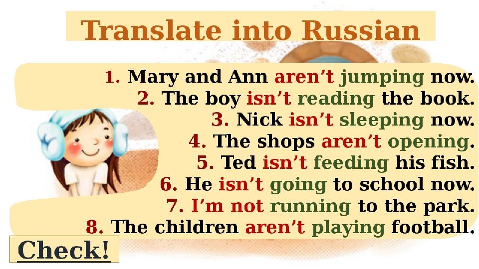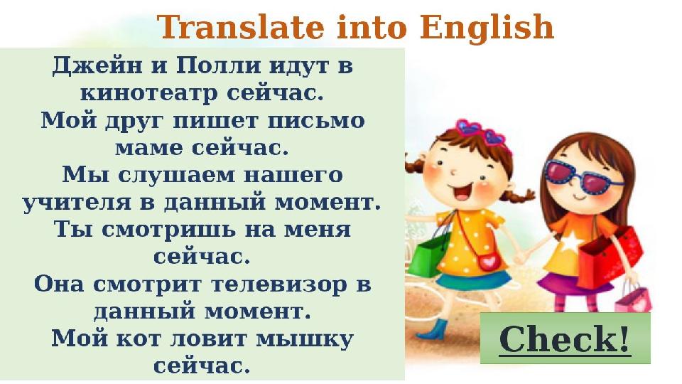 Проверь себя The Present Continuous Tense •Как называется изучаемое время? •Какие действия описываются с помощью данного времени? •Кто правит королевством? •Как образуется данное время? •Если глагол оканчивается на –ie, то что происходит с ним при добавлении окончания –ing? •В каком случае удваивается конечная согласная глагола при добавлении окончания –ing? •Каков порядок слов в вопросительном предложении государства Present Continuous?