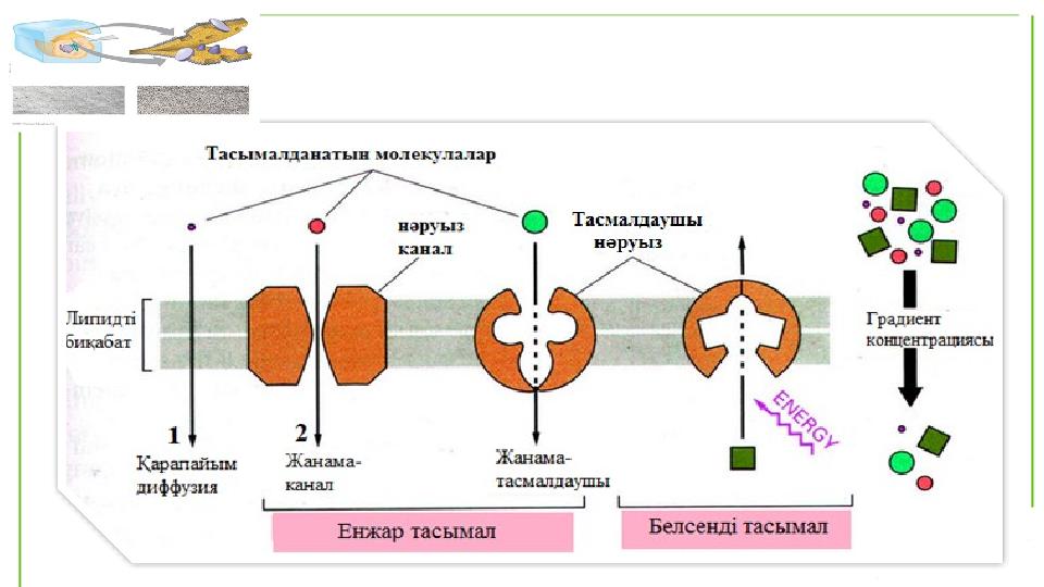 Сабақ тақырыбы: Жасуша мембранасы арқылы белсенді және енжар тасымалдаудың ұқсастықтары мен айырмашылықтары.