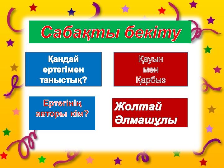 Презентация . Жолтай Әлмашұлы "Қауын мен Қарбыз" 4- сынып