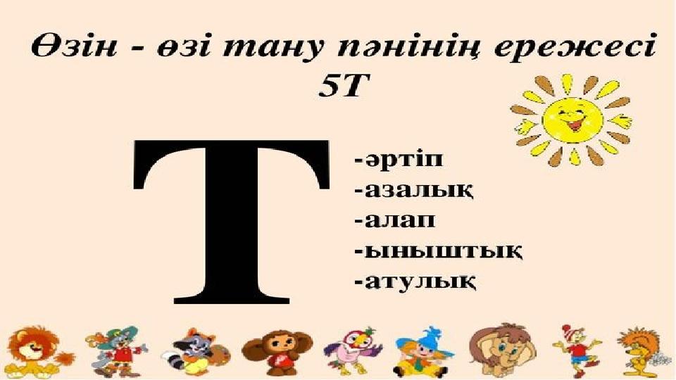 Құндылығы: АқиқатҚасиеттері: Өз бойынан ақиқат іздеу, өз – өзіне есеп беру, жауапкершілік.