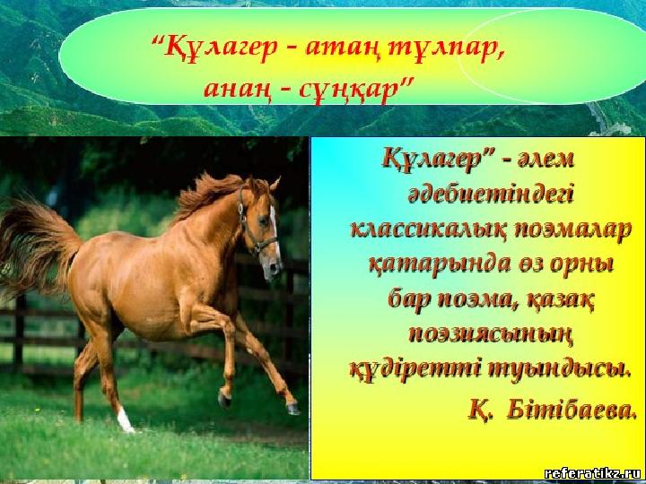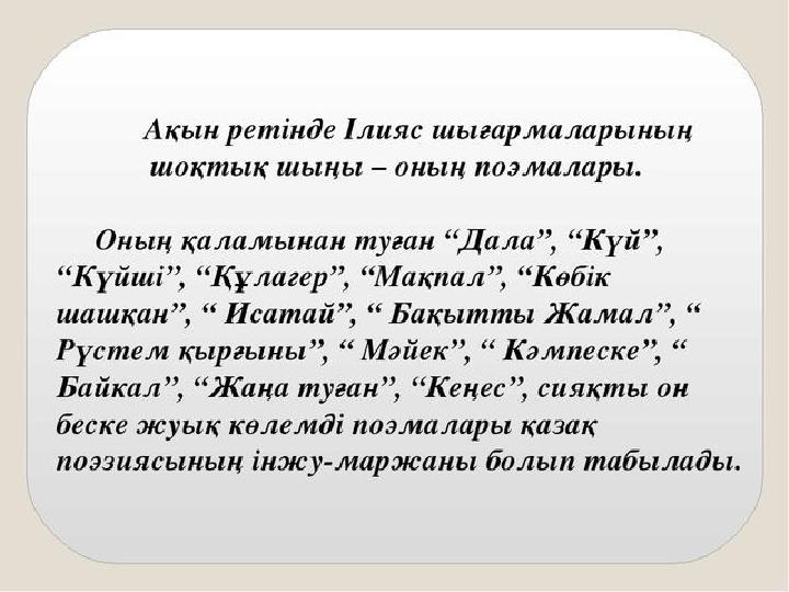 •Ақын поэзиясындағы фольклорлық мұраларды жан-