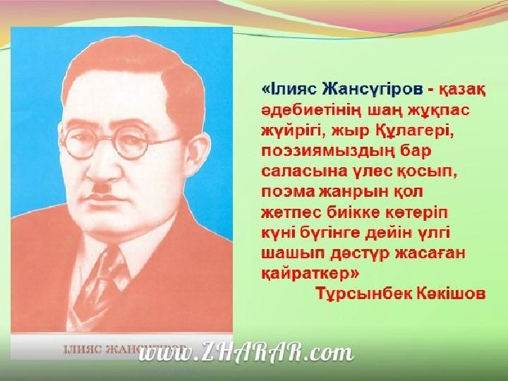 Мырзабек Дүйсенов: «Қазақ әдебиетінің белді өкілдерінің бірі -Ілияс Жансүгіров халықтың сөйлеу тілін,фольклор тілінің нұсқаларын пайдалана отырып, қазақтың әдеби тілін, фольклор тілінің нұсқаларын пайдалана отырып, қазақтың әдеби тілін қалыптастыруда өзіндік үлес қосты».