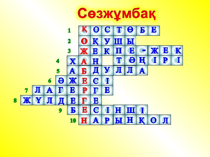 Қ – ______________ О – ______________ Ж – _____________ А – ______________ Б – ______________ Е – ______________ Р – ______________ Г – ______________ Е – _____________ Н – ______________