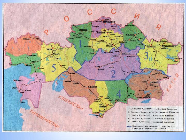 Қазақстан қандай материкте орналасқан? Еуразия Еліміздің ең үлкен шекарасы қай мемлекетпен? Ресей Каспий теңізі арқылы Қазақстан қандай елдермен шектеседі? Иран, Азербайджан Қазақстанның ең үлкен облысы? Қарағанды Республикалық маңызы бар қалалар? Астана, Алматы