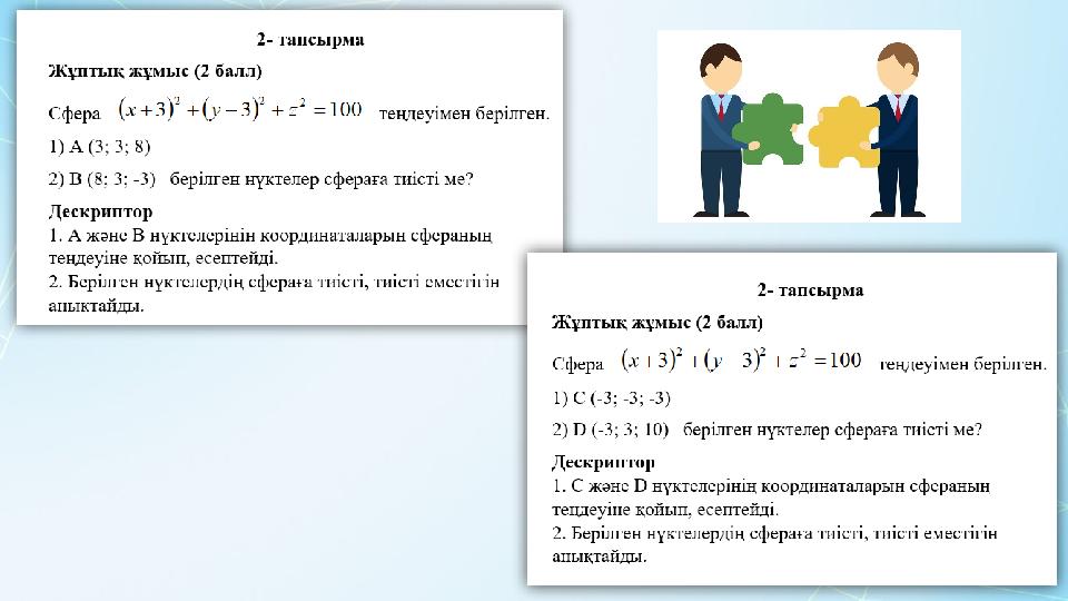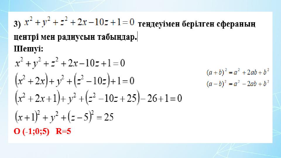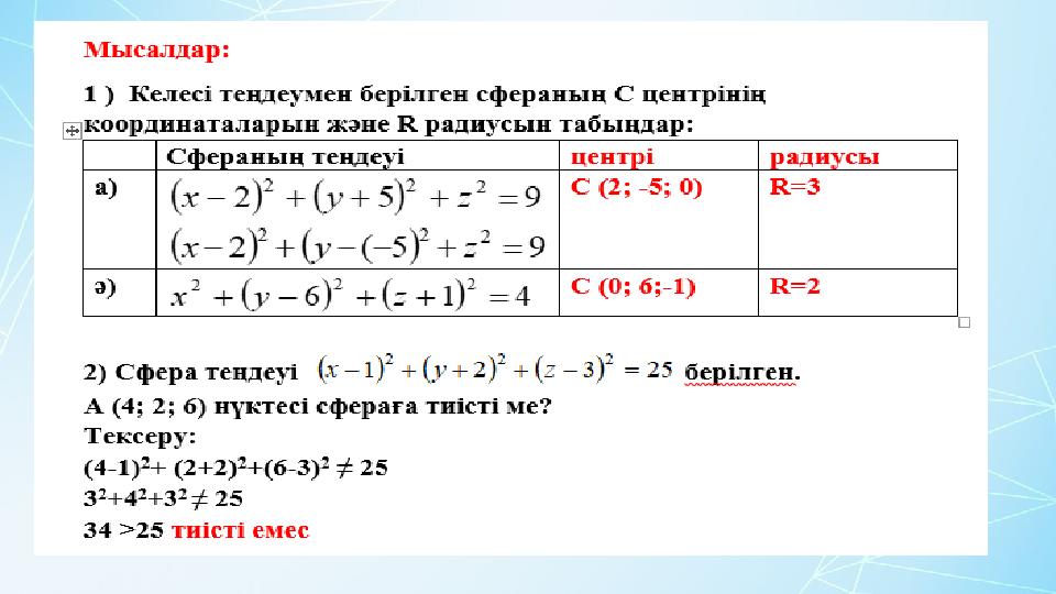 10.4.10 –сфера теңдеуін білу және оны есептер шығаруда қолдану Оқу мақсаты: