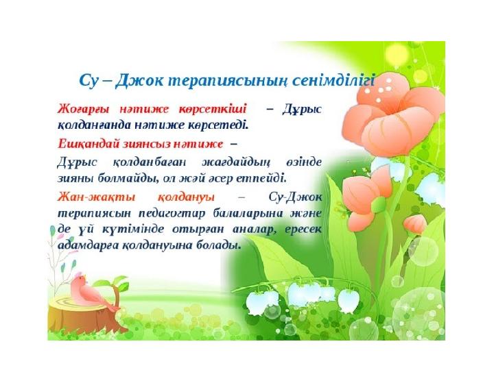 “ Су-Джок терапиясы ” Мақсаты Сабақта су-джок терапиясын тиімді қолдану әдіс-тәсілдері тәжірибесімен бөлісу.