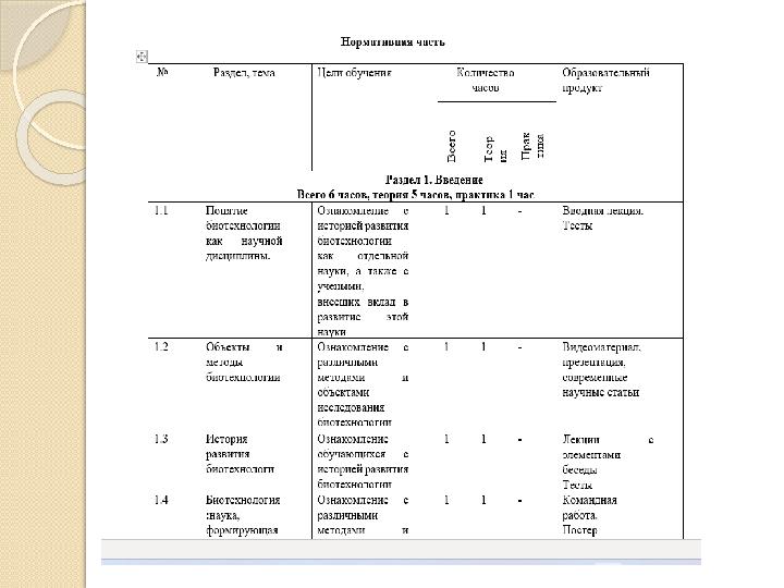 Методы : Методы обучения: Лекции и семинары Лабораторные практикумы Анализ кейсов из реальной биотехнологической практики Проектные и исследовательские работы Дискуссии и групповые задания
