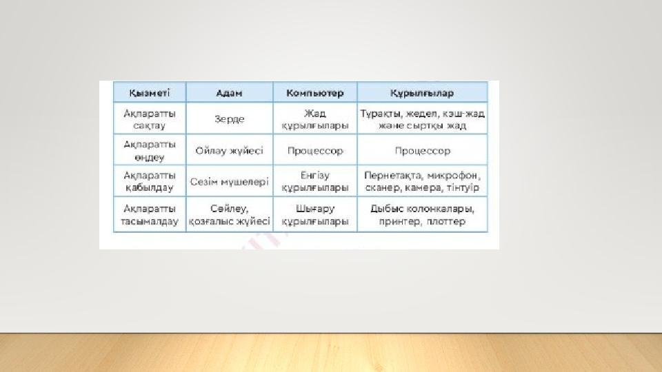 Оқушылар әр құрылғының тұсына оның қандай құрылғы екенін жазады және сол туралы мәліметтер айтады.