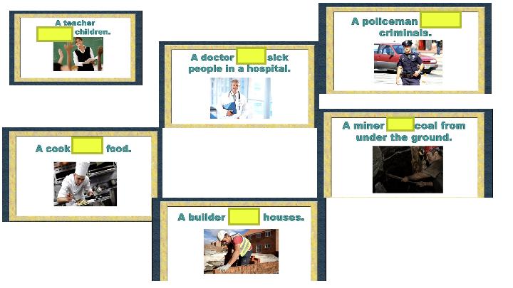 Learning objectives: 5 .2.3.1 give on opinion at sentence level on a limited range of general and curricular topics 5.3.3.1 write with support factual descriptions at text level which. describe people, places and objects Lesson objectives: -All learners will be able to speak on the topic “Professions” using active vocabulary in 3-4 sentences with support -Most learners will be able to get information on the topic “Professions” «Hobbies» using active vocabulary in 5-7 sentences with little support -Some learners will be able to present information on the topic “Professions” «Hobbies» in a short story using active vocabulary in 8-9 sentences without support