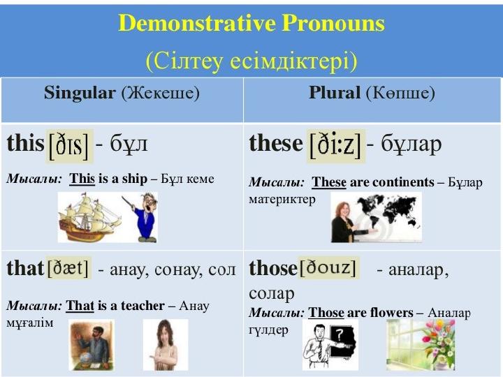 сілтеу есімдігі (Demonstrative Prn.) — this (мынау),