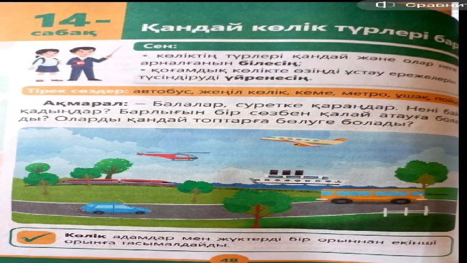 Дүниетану 2-сынып 14 –сабақ Қандай көлік түрлері бар?