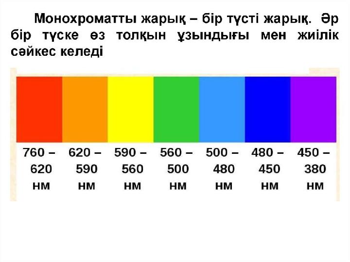 түс екенін көрсетті. Ол негізгі жеті түстен тұрады: қызыл,