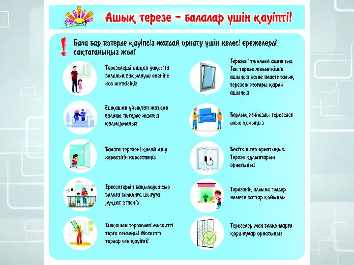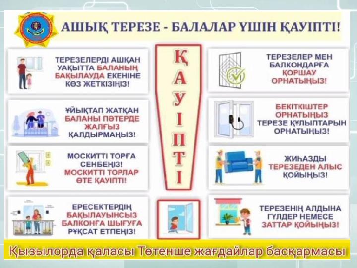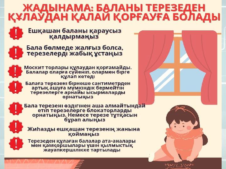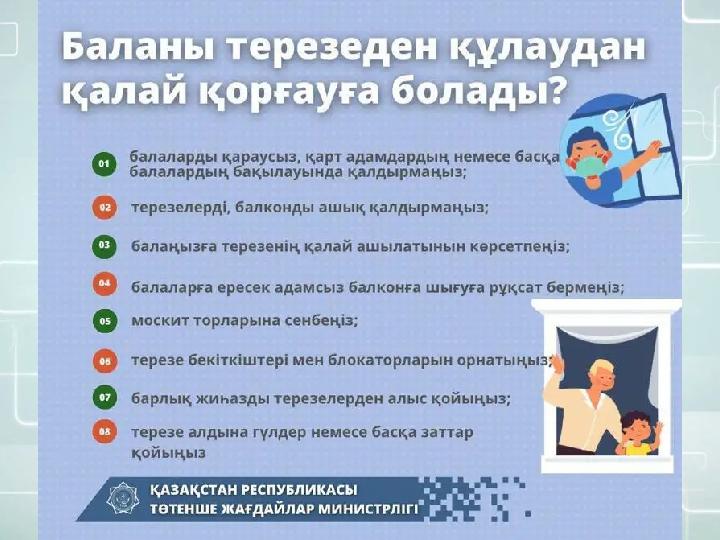 екенін көрсетуде. Кейінгі 5 жылда 200- ге жуық бала терезеден құлап, көз жұмған.