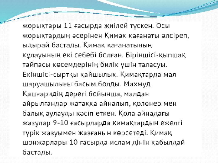 Қарлұқ қағанаты (VIII ғғ.) және Оғыз мемлекеті (IX-XI ғғ.) Қимақ (IX-XI ғғ.) және қыпшақ мемлекеттері (X-XIIғғ.) 10 сынып