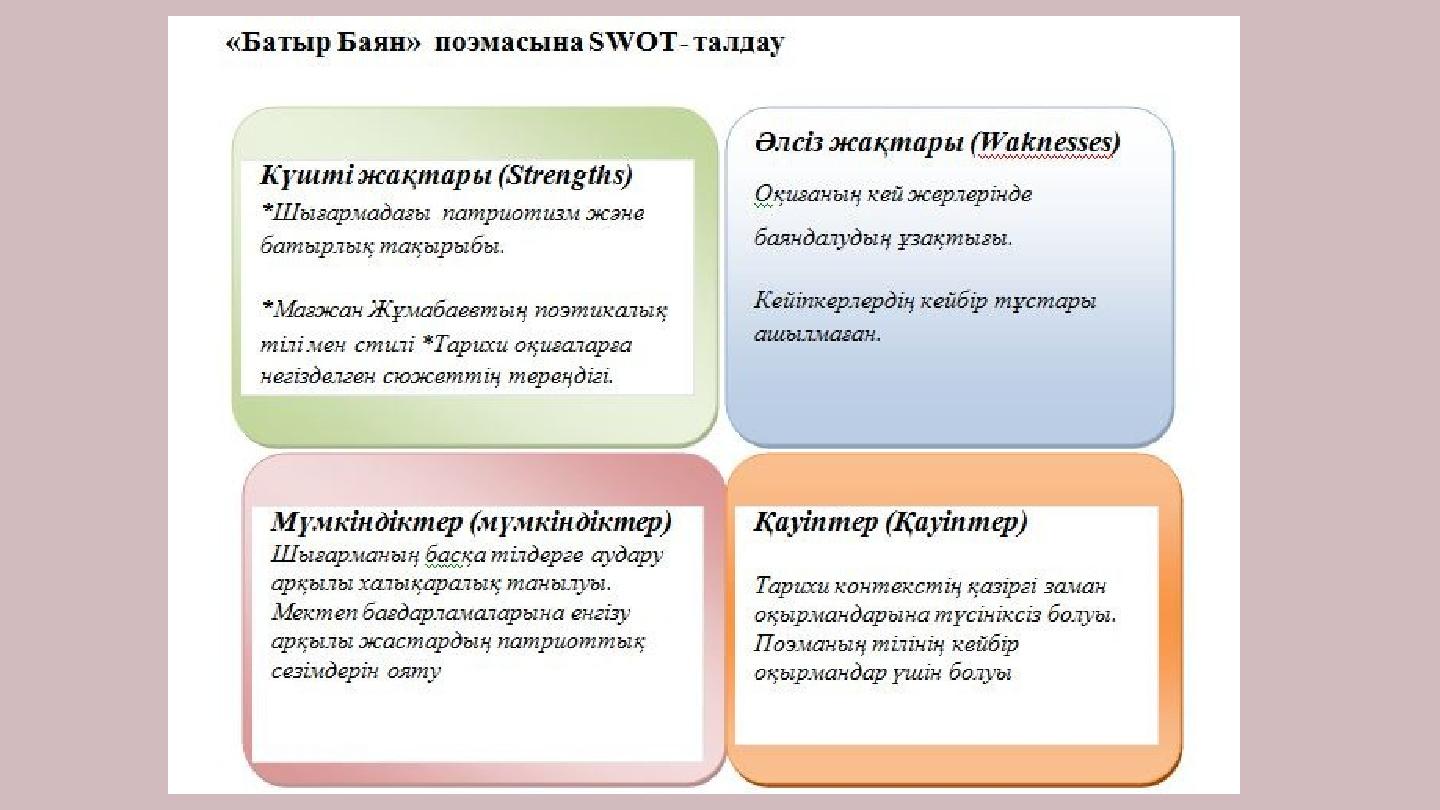 «Зар заман» толғауын қазіргі заманмен байланыстырып, креативті ой толғау жазу тапсырмасын