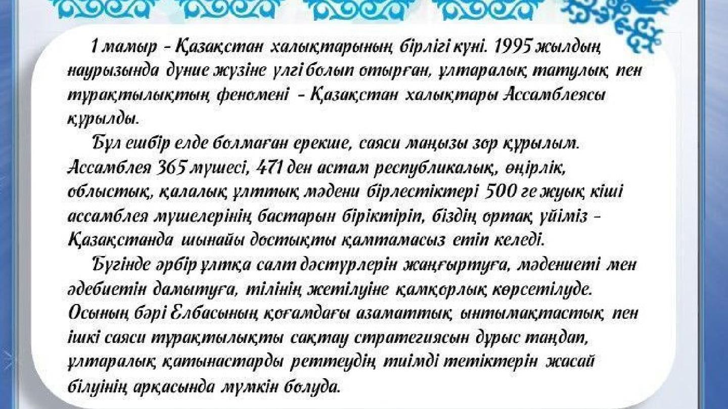 1 - мамыр Қазақстанда мекен ететін ұлттар