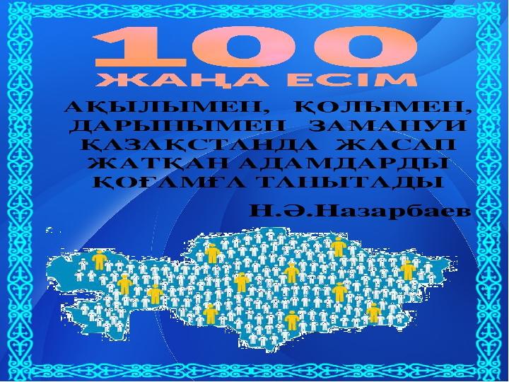 Қазақстандағы 100жаңа есім табысты адамдар-табысты ел