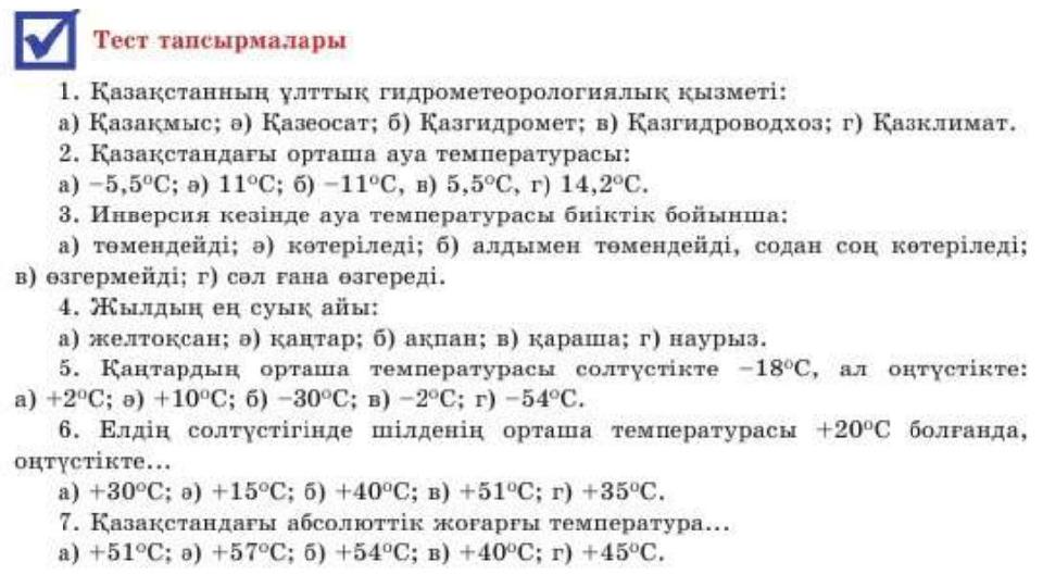 Бүгінгі сабақта: Қазақстанның климаттық жағдайын талдауды үйренесіздер.