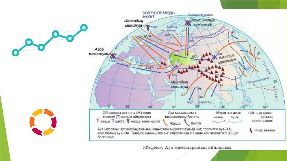 ААМ Қ А М ТАМ Арктикалық ауа массалары жылдың суық мезгілдерінде үстемдік етеді Қоңыржай ауа массалары жыл бойы басым Тропиктік ауа массалары жылдың жылы мезгілдерінде енеді