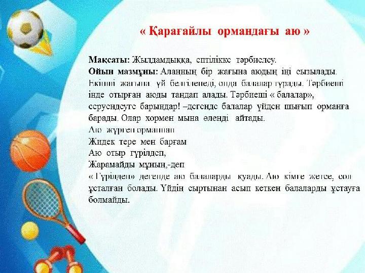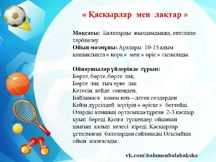 Қимылды ойындарКАРТОТЕКАСЫ балабақша