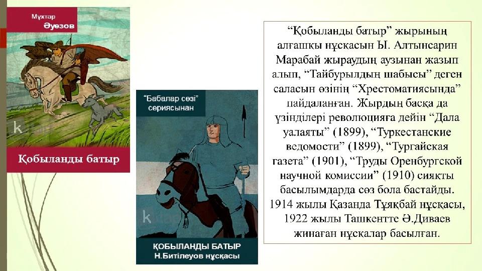 «Қобыланды батыр» жыры – қазақ халқының мазмұны бай да салалы эпостық дастандарының бірі. Жыр көп замандар бойы өмір сүріп, ірі – ірі эпос айтушылардың қолынан өткен.