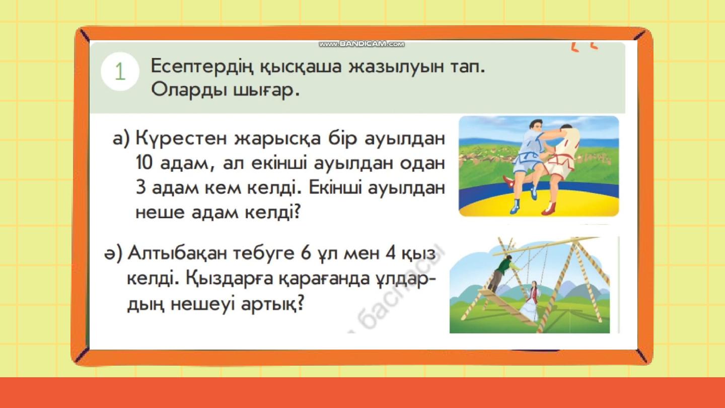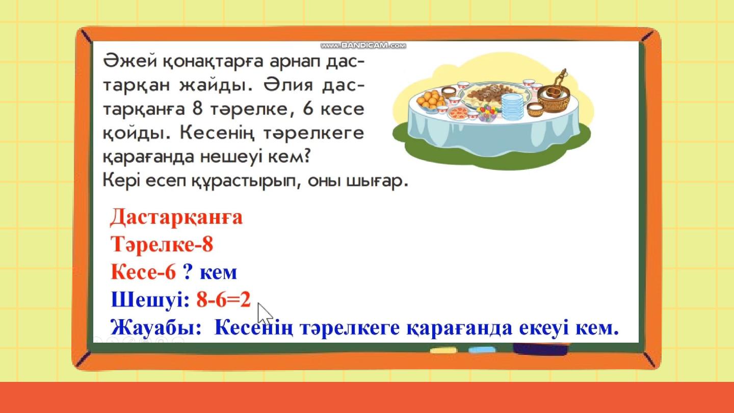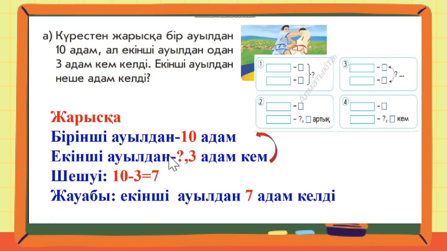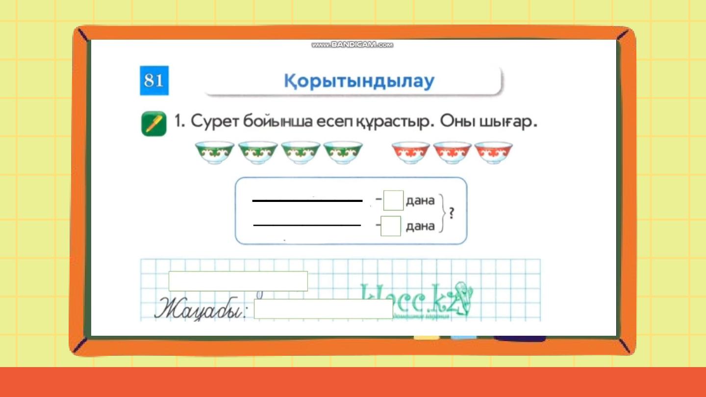 81-сабақ ҚОРЫТЫНДЫЛАУ Сабақтың мақсаты Есепті сызба,сурет,қысқаша жазба түрінде модельдеу,есепті шешу үшін тірек сызбасын таңдау