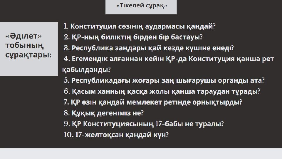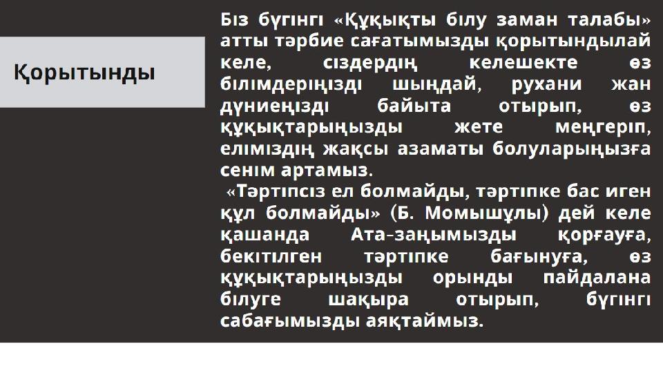 Оқушылардың құқықтық білімдерін тексере отырып, жауапкершілікті арттыру, алдына мақсат қоя білуге тәрбиелеу