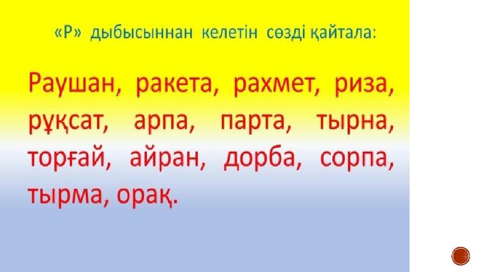 "Р" дыбысын сөзде, сөз тіркесінде, сөйлемде машықтандыру