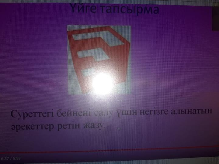 Тапсырма Мына ссылканы қосып көру арқылы үйренуге болады. Өзің жасап көр! https://youtu.be/kBWGBNTJpVc Paint графикалық редакторы және SketchUp программасы құралдарының қызметіндегі программаның ұқсастығы мен айырмашылығын анықтап, салыстыр.