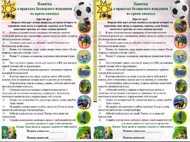 Профилактика техники безопасности за время летних каникул детей и подростков Алматинская область, Коксуский район, с.Балпык би. СШ №1 имени Б.Кундакбаевой Педагог-психолог: Смайлова М.С.