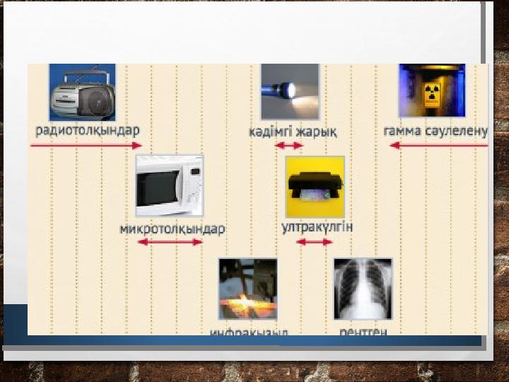 Электромагниттік толқын шкаласы. Электромагниттік толқын құрылымы электромагниттік толқындар диапозонын қолдануға мысалдар келтіру және сипаттау