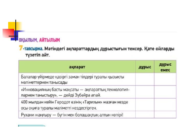 Шығармашылық азабы- творческие муки Сыналы қыш жазу-клинопись Түлек-выпускник Қыркүйектің он жетісі Сынып жұмысы «Рухани жаңғыру» -тарих пен инновацияның сабақтастығы