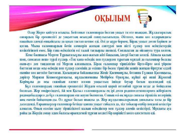 Мәтінді оқып, түсінгеніңді айт.
