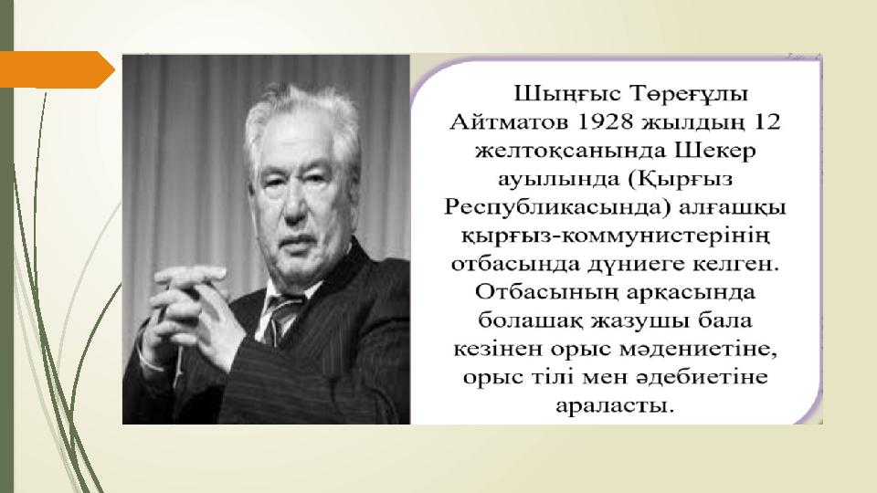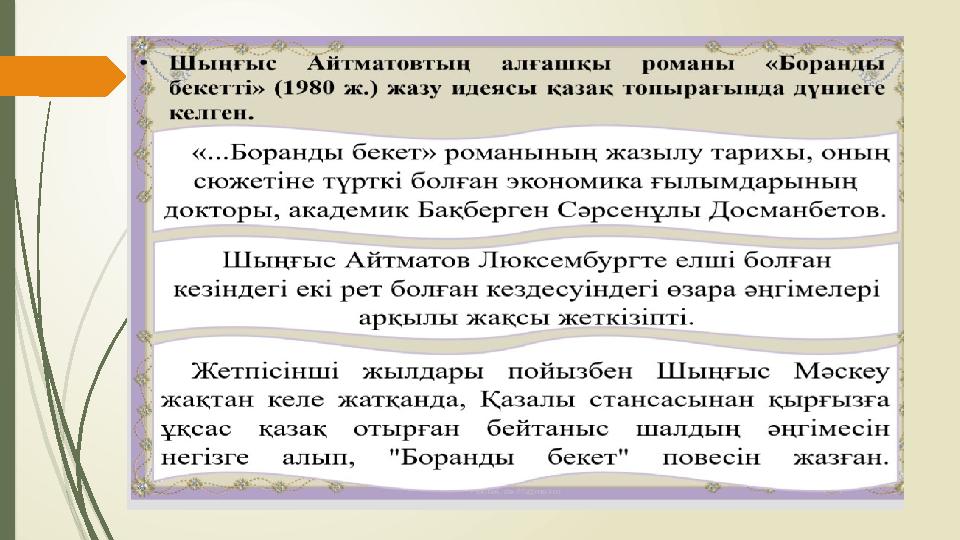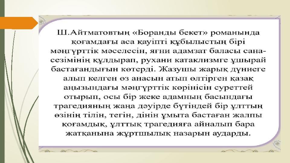 Ш.Айтматов «Боранды бекет» романы. Алғашқы ұстаз