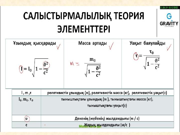 11.7.1.2 – есеп шығару кезінде Эйнштейн постулаттары мен Лоренц түрлендірулерін
