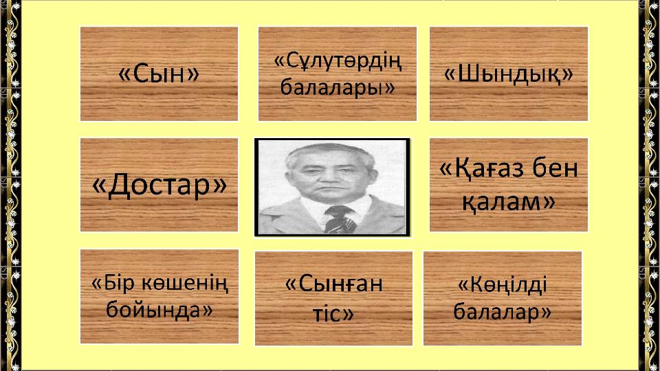 алған азап", "Әзілі ме шыны ма?" , "Өкініш", "Теке қарт",