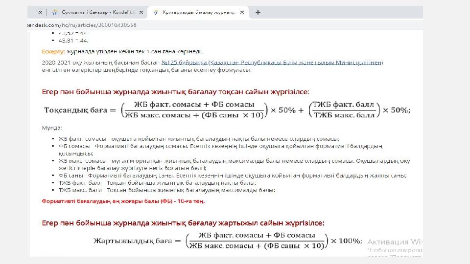 Ескерту: Жиынтық бағалау үшін балл қою кезінде мұғалім электрондық
