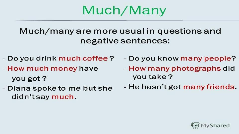 ·To use quantifiers many , much , a little/little , a few/few, a lot of