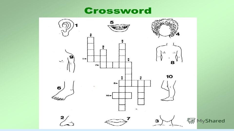 NEW VOCABULLARY ear mouth arm body chin eye face finger hair head heart leg foot (feet) chest nose shoulder back neck stomach toe trunk.