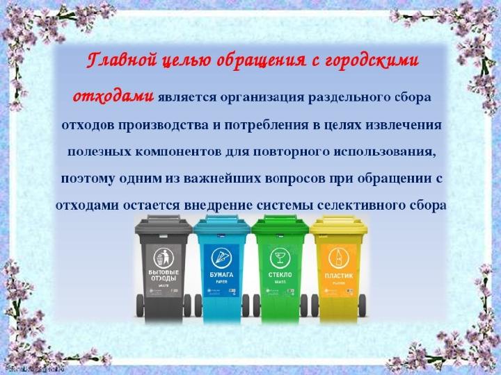 заводах. Для этого мусор нужно собирать раздельно. Раздельный сбор