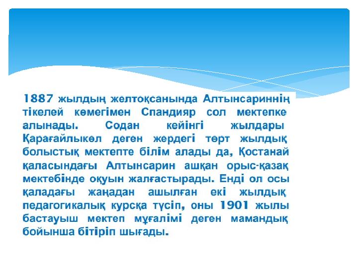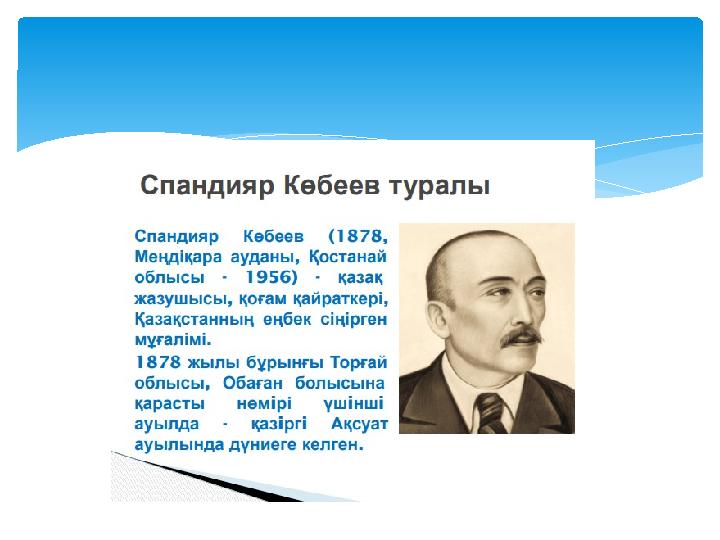 Спандияр Көбеевтің туғанына 145 жыл. Сынып сағаты. Тәрбие сағатына слайд, презентация
