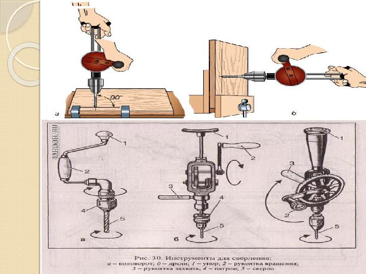 ручной дрелью и на