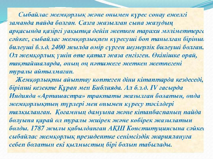 Тақырыбы:Сыбайлас жемқорлық қайдан пайда болады?