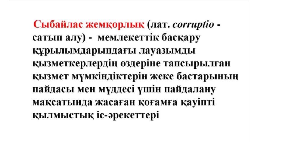 ерекшеленеді. Сыбайлас жемқорлық